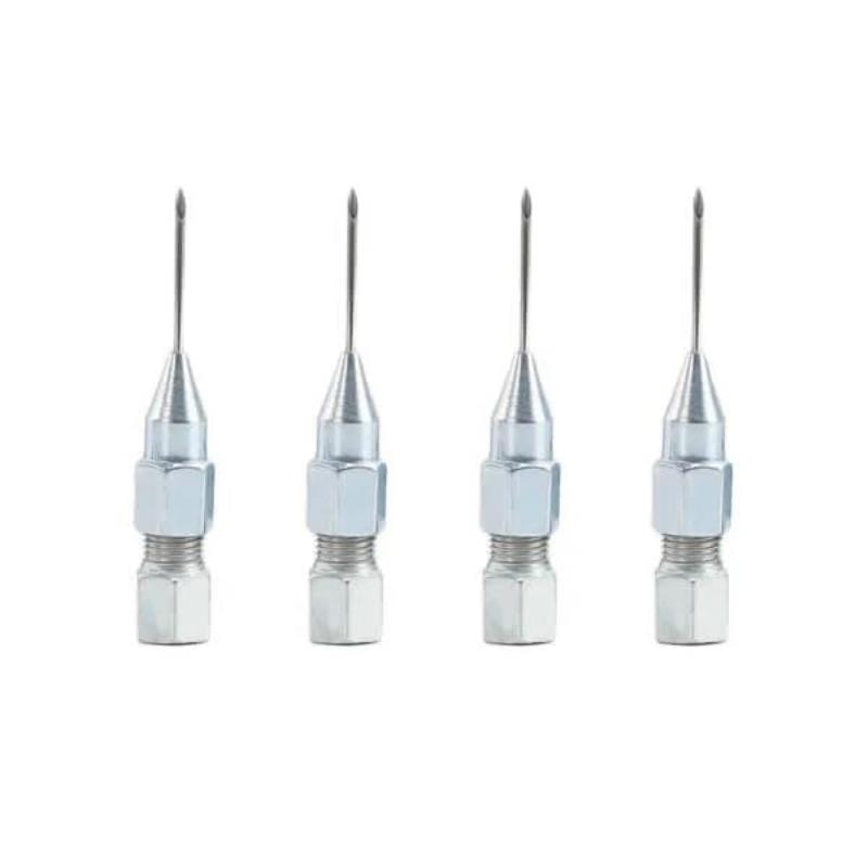 A ponta em agulha permite alcançar pontos específicos, garantindo uma lubrificação adequada e evitando o acúmulo de graxa em áreas indesejadas.